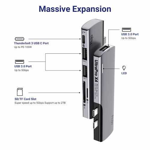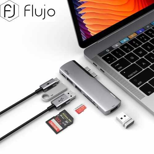 Home Networking Power Flujo CH-68 6-in-1 USB-C Hub Adapter For MacBook Pro/Air | Thunderbolt 3 | Dual USB-C Docking Station