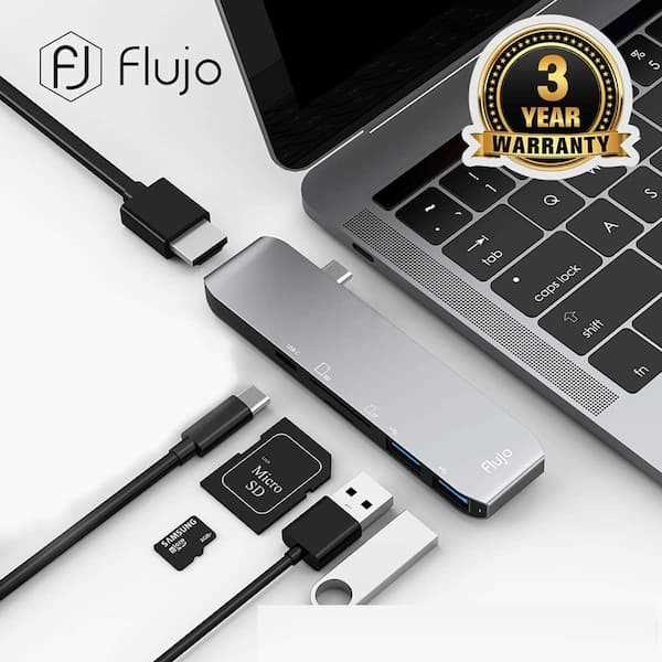 Home Networking USB Hubs Flujo FJ-CH-33-G USB-C Hub with 2 USB 2.0 Ports and TF/SD Card Reader Compact Multi-Port Adapter