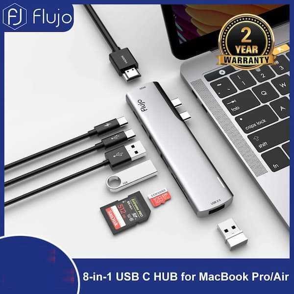 Home Networking USB Hubs Flujo FJ-CH-60 8-in-1 Dual USB-C Hub with Thunderbolt 3 40Gbps, 4K HDMI
