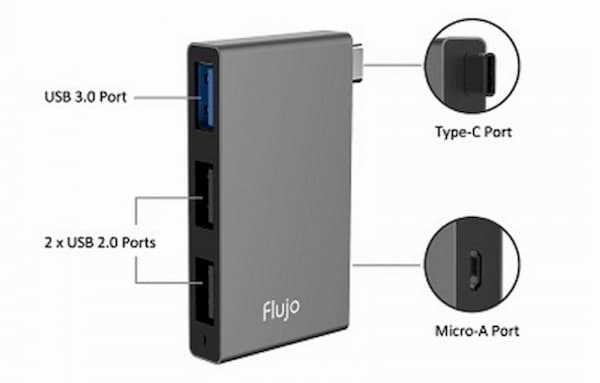 Home Networking USB Hubs Flujo FJ-CH-15-A/B USB-C & Micro USB Combo Hub with 1 USB 3.0 and 2 USB 2.0 Ports