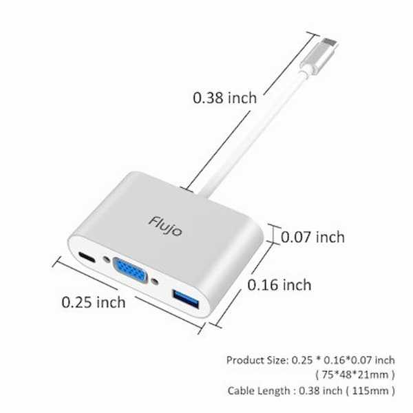 Home Networking USB Hubs Flujo FJ-CH-11-B USB-C VGA Multiport Adapter with Power Delivery and USB 3.0 Port