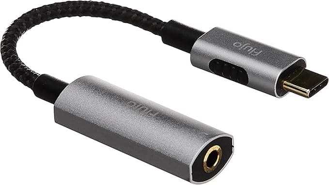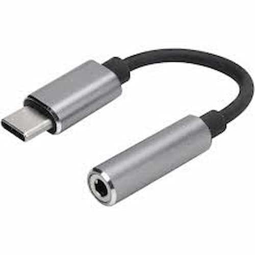 Home Networking Power Flujo X-29 USB-C to 3.5MM Audio Cable with Charging Port Grey And Silver