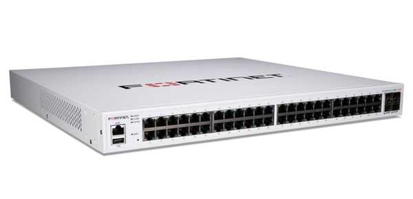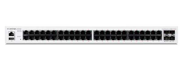 Home Networking Network Switches Fortinet 48-Port 1Gb PoE+ RJ-45 & 4x 10Gb SFP+ Switch | Uplinks | Layer 2+ Switch for Enterprise Networks (FS-448D-FPOE)