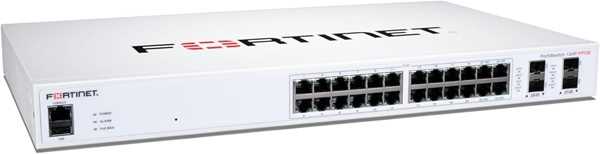 Home Networking Network Switches Fortinet FS-124F-FPOE 100 Series PoE+ Switch | 24x 1GbE RJ45 Ports with Full PoE, 4x 10GbE SFP+ Uplinks | Layer 2+ Managed Network Switch