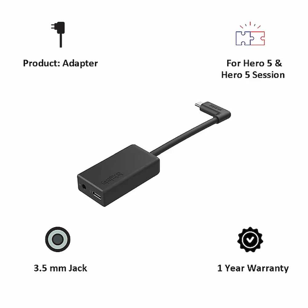 Home Networking Cameras & Surveillance Accessories GoPro AAMIC-001 3.5mm Mic Adapter for HERO5 - Black