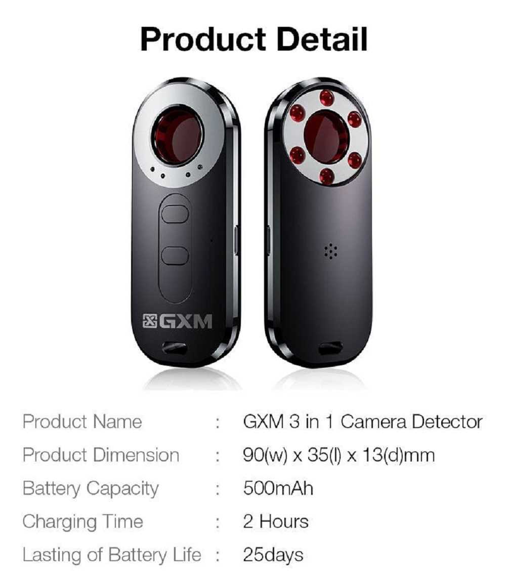 Home Networking Cameras & Surveillance GXM AK400 3-in-1 Detector Detect Hidden Spy Camera with Infrared Scan, Vibration Sensing, Anti-theft Alarm & GPS Detector (Black)