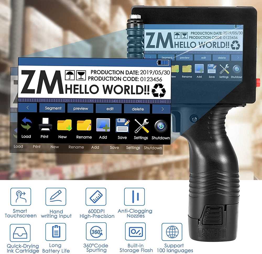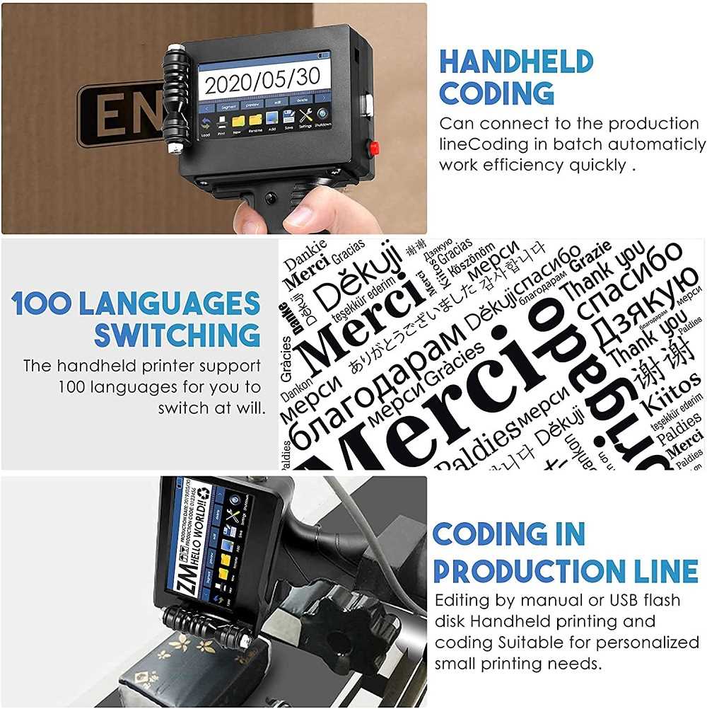 Home Copper Systems Cable Management Label Printers & Accessories Handheld 4.3 Inch HD Touch Handheld Screen, Portable Inkjet Printer with Quick-Drying Ink Cartridge for Label/ Production Date/ Barcode/ QR Code (Blac...