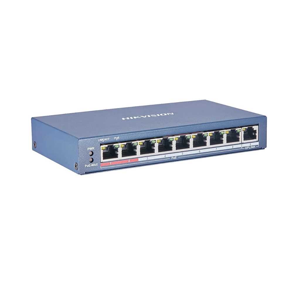 Home Networking Network Switches Hikvision DS-3E0109P-E(C) 8 Port 100M Fast Ethernet Unmanaged POE Switch (Blue)