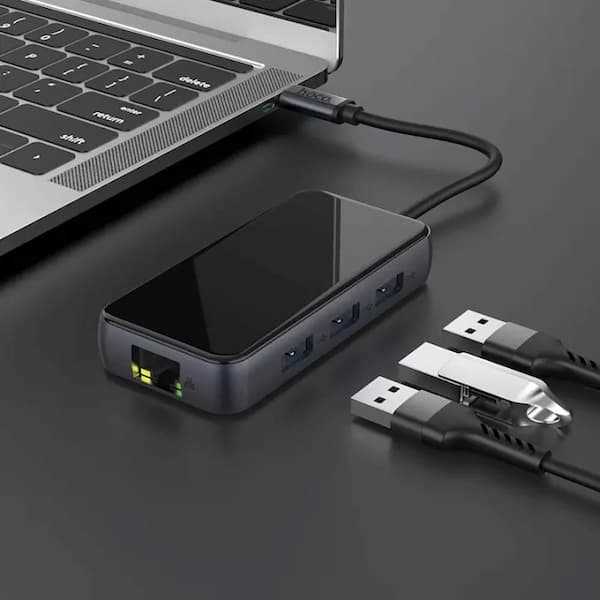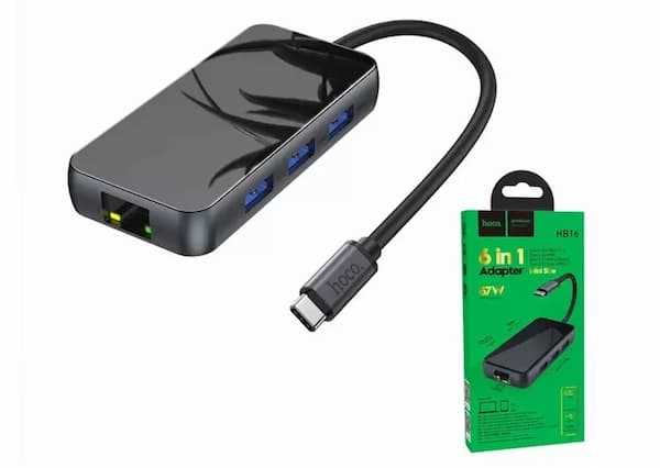 Home Networking Power Hoco Premium HB16 Easy Expand Type-C to USB3.0 * 3 + HDMI + PD + RJ45 Adapter