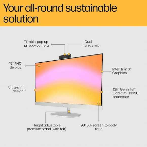 Home Electronics Desktop HP 27-cr2000d All-in-One Desktop PC (BA4D1PA) - Intel Core Ultra 7 255U, 16GB DDR5 RAM, 1TB NVMe SSD, 27" FHD Touchscreen, Windows 11 Home, Intel UHD ...