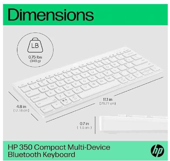 Home Electronics Computer Peripherals HP 692T0AA Compact 350 Wireless Bluetooth Keyboard - White, Multi-Device Compatible, AAA Battery