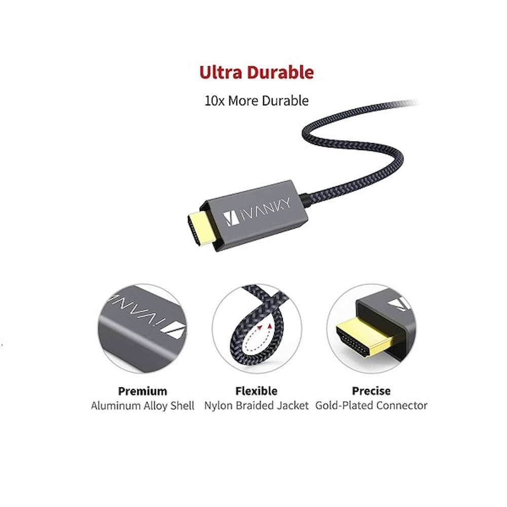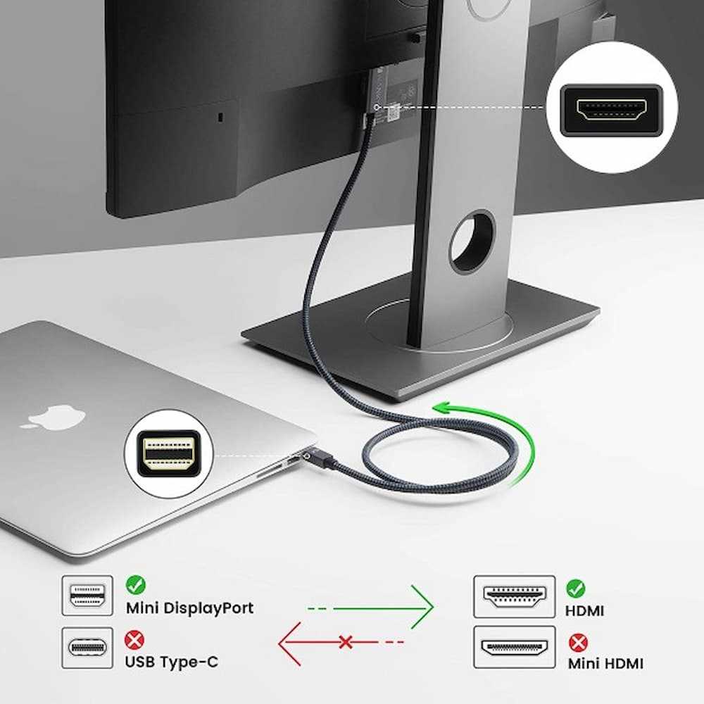 Home Networking Power IVanky VBB22 Mini Display Port To HDMI Male Nylon Cable (Grey)