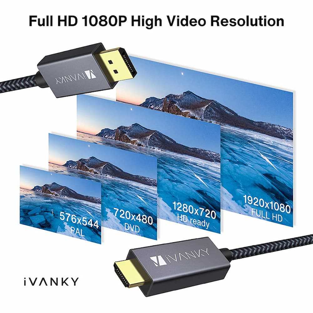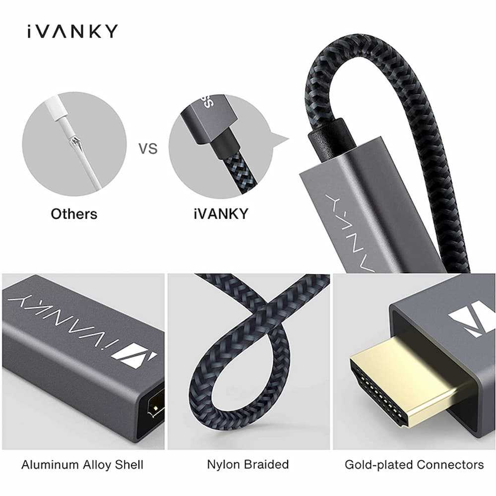 Home Networking Power Ivanky VBC52 Display Port Male To HDMI Male Nylon Cable (Grey)