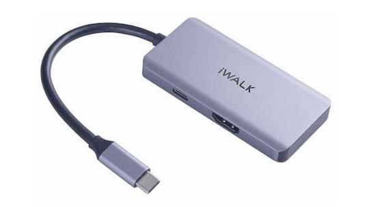 Home Networking USB Hubs iWALK ADH002 USB-C Hub 5-in-1 HDMI 3 USB 60W PD Fast Charging Multi Adapter Grey