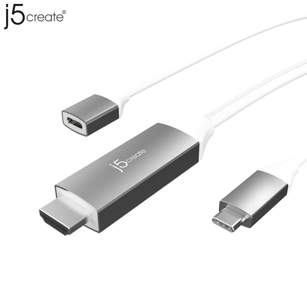 Home Networking Power J5 Create JCC155G USB-C to 4K HDMI Cable With PD100W Pass-Through Compatible with macOS / Windows / Chrome OS / iPadOS / Android