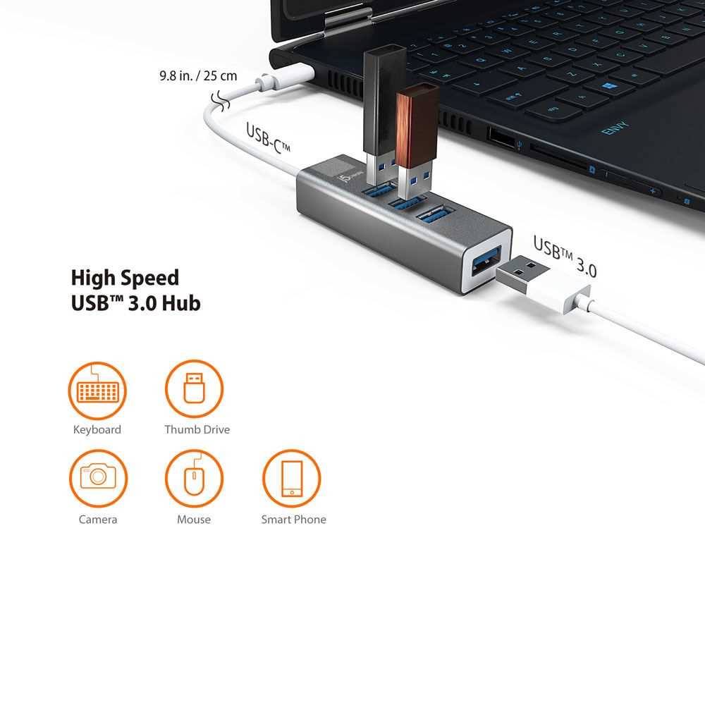 Home Networking USB Hubs J5 Create JCH344 USB 3.1-Port USB Hub (Silver)