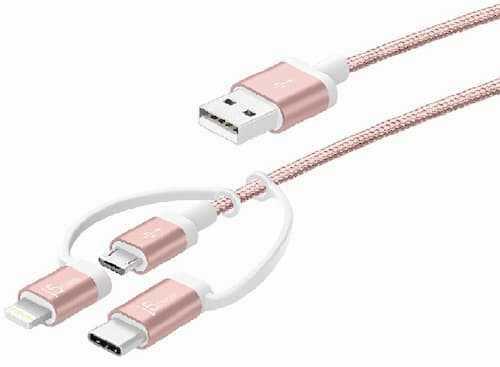 Home Networking Power J5 Create JMLC11R USB To Lighting Micro USB Type-C Cable 3-IN-1 (Rose Gold)