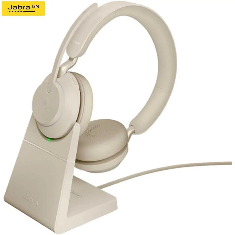 Home Networking Conferencing, Phones Webcams & Headsets Jabra Evolve2 65 Link380a MS Stereo Wireless On-Ear Headset with Stand (Beige)- 26599-999-988