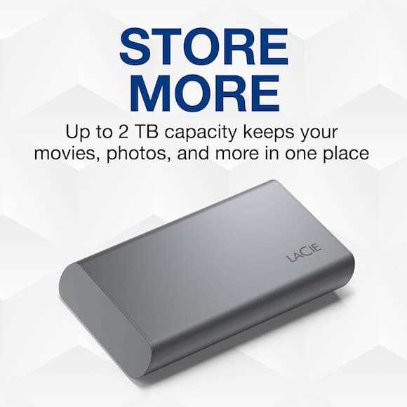 Home Networking Servers & Storage LaCie 1TB External SSD - USB-C Portable Solid State Drive, Space Gray (STKH1000800)