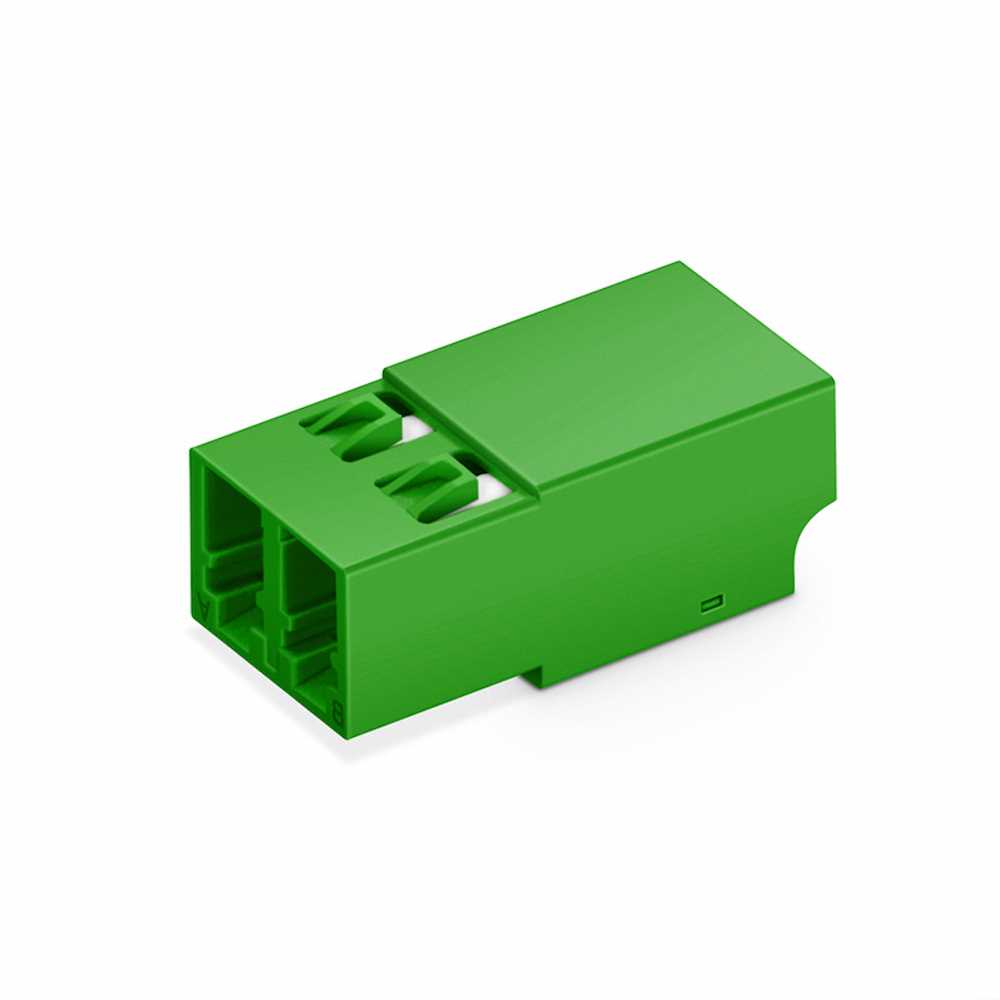 Home Networking Power LC/APC to LC/APC Duplex OS2 Single Mode Shuttered Fiber Optic Adapter Without Flange - Green