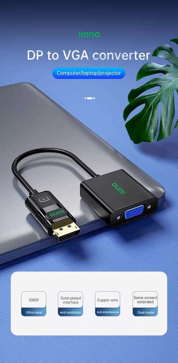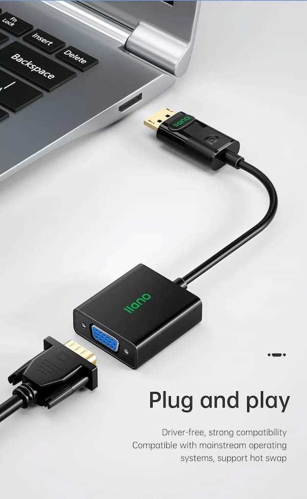 Home Networking Power Llano LCD1108B Display Port DP to VGA Adapter Cable Male To Female Converter HD For PC Computer Laptop TV Monitor Projector (Black)
