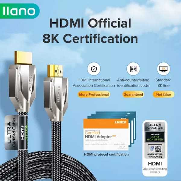 Home Networking Power llano LCH4010G 8K HDMI 2.1 Certified Cable 8K/60Hz 48Gbps Ultra High-Speed 3D HDR Cable HDMI 2.0 4K/120Hz 2K/144Hz Cable for PC, Laptop, HDTV Switch, ...