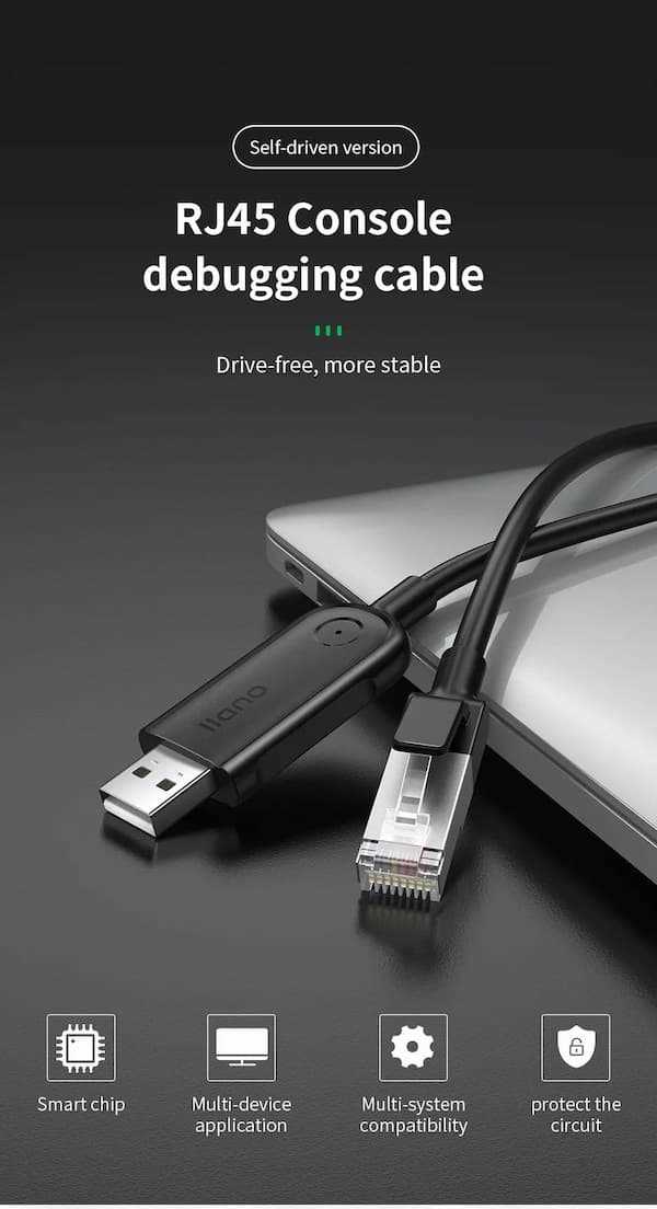 Home Networking Power Llano LCS2025B USB to RJ45 Console Debugging Cable Serial Adapter 1.5M/3M Converter (Black)