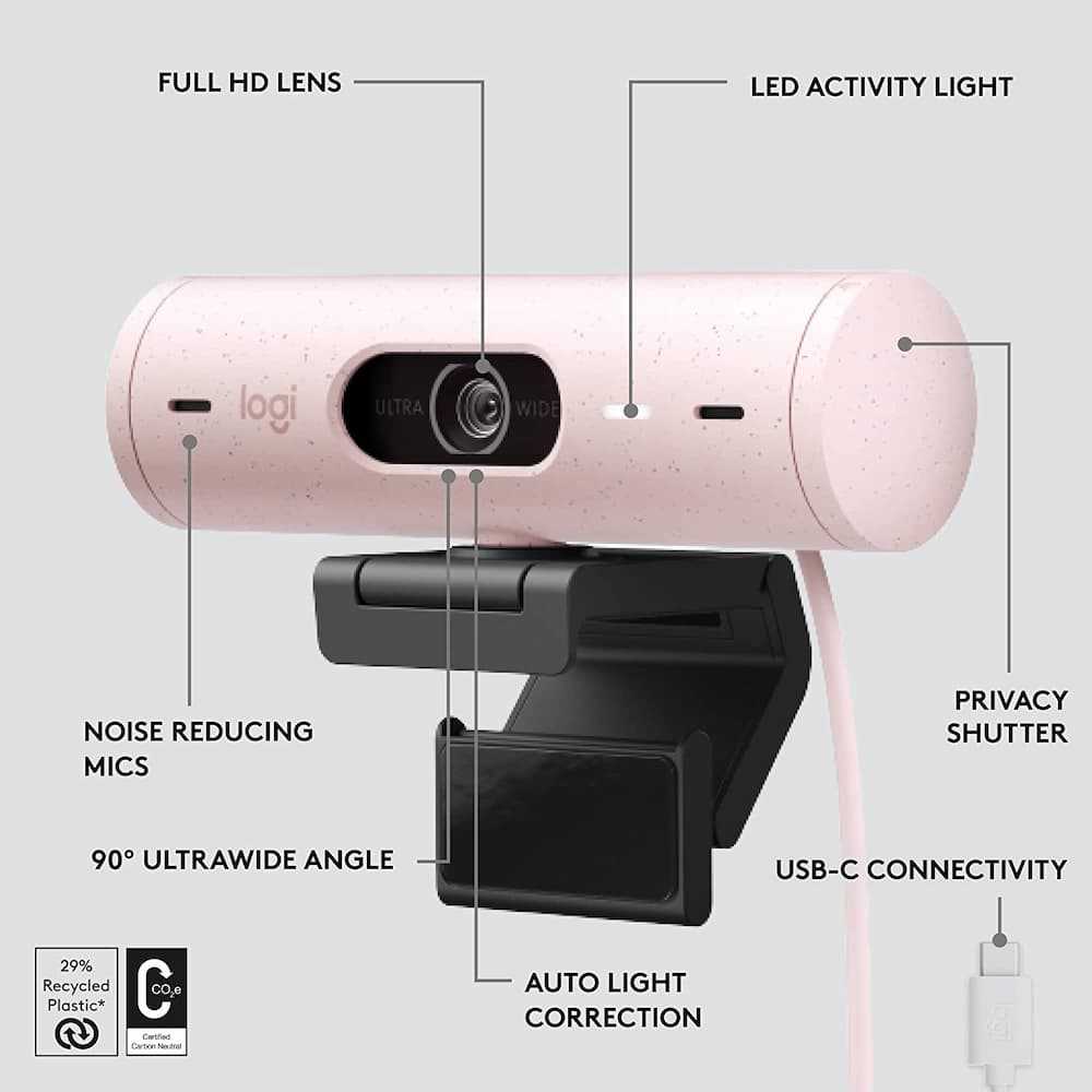 Home Networking Conferencing, Phones Logitech Brio 500 Full HD Webcam With Auto Light Correction (Rose)