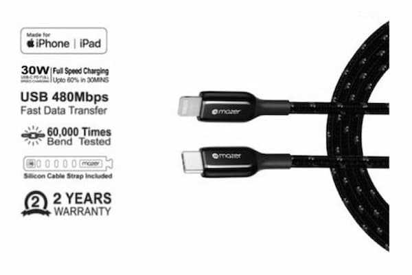 Home Fiber Optic Cables Fiber Pigtails Mazer M-PL3Pro-C2L250-BK Infinite LINK PL3PRO Lightning To USB-C Cable (2.5M)- Balck