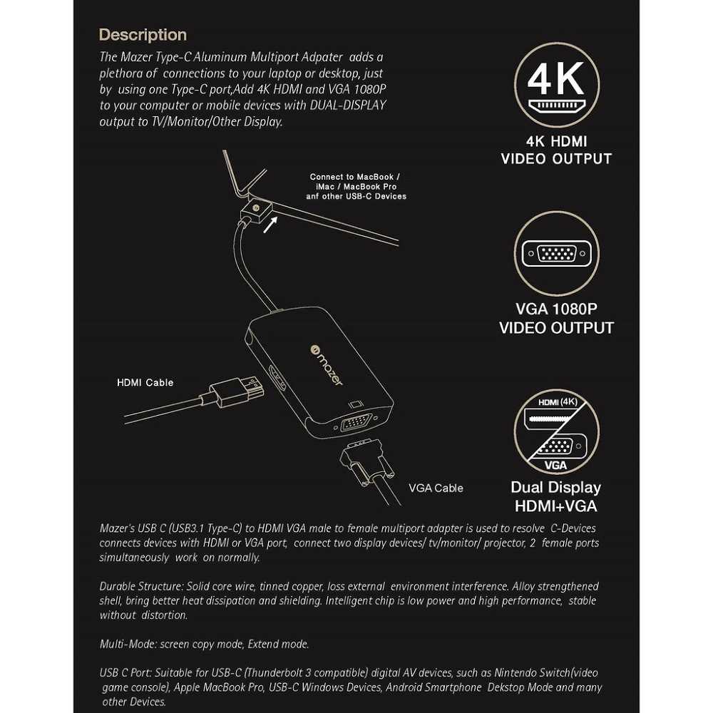 Home Networking Network Adapter Mazer M-UC2MULTI301 USB-C Multiport Adapter (Grey)