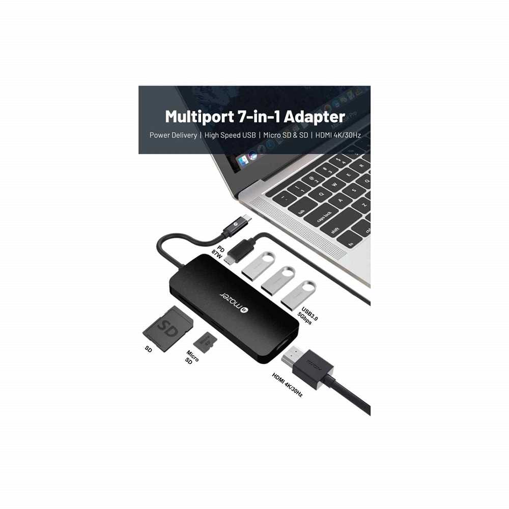 Home Networking Network Adapter Mazer M-UC2MULTI4070 USB-C Multiport 7-in-1 Adapter (Black)