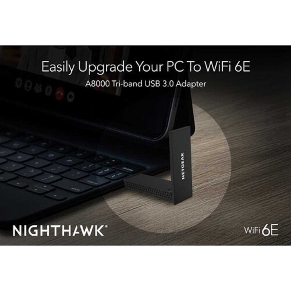 Home Networking Network Adapter Netgear A8000-100PAS Nighthawk WiFi 6E USB 3.0 Adapter with Tri-Band Wireless Gigabit Speed for Windows PC (Black)