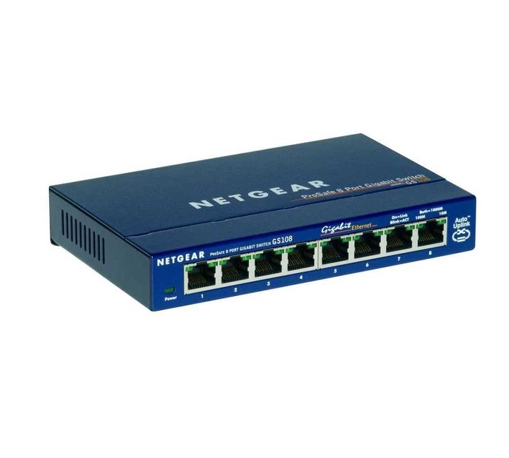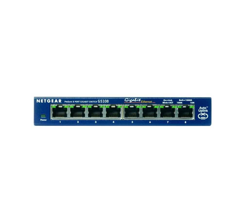 Home Networking Network Switches Netgear GS108GE 8-Port Unmanaged Gigabit Copper Switch with Plug & Play, Upto 1000 Mbps Data Transfer, Fanless, Metal Enclosure (Blue)
