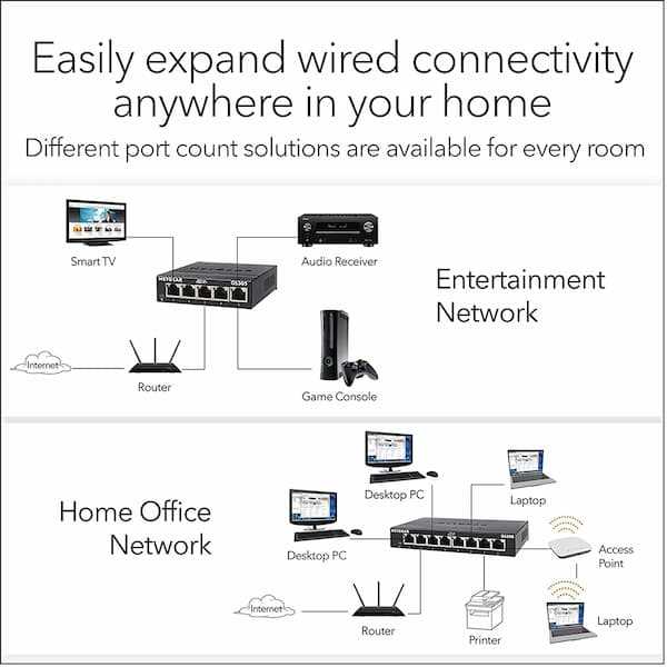 Home Networking Network Adapter Netgear GS305 5-Port Gigabit Ethernet Unmanaged Switch (GS305-300UKS) - Desktop, Sturdy Metal Fanless Housing