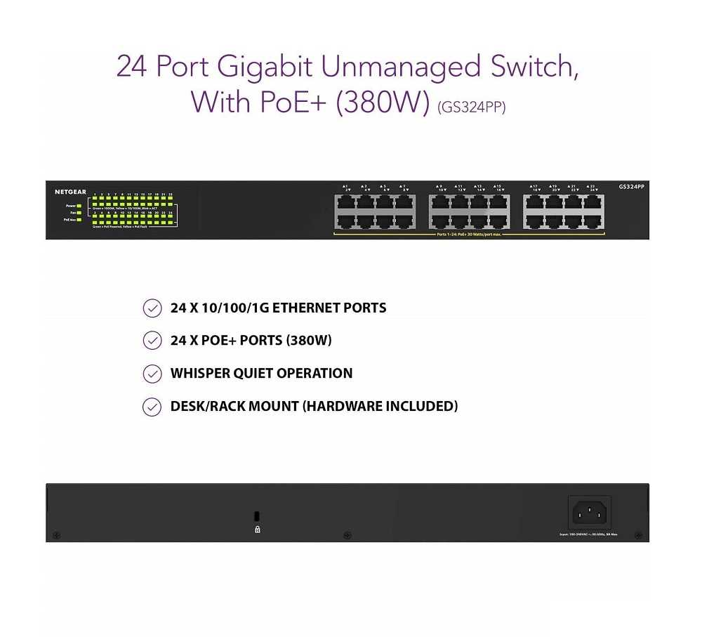 Home Networking Network Switches Netgear GS324PP-100EUS 24-Port Gigabit PoE-Compliant Unmanaged Switch (Black)