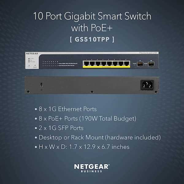 Home Networking Network Switches Netgear GS510TPP-100EUS Gigabit Ethernet Smart Managed Pro Switch