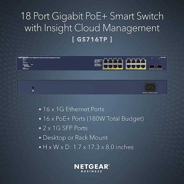 Home Networking Network Switches NETGEAR GS716TP-100EUS 18-Port PoE Gigabit Ethernet Smart Switch Desktop or Rackmount