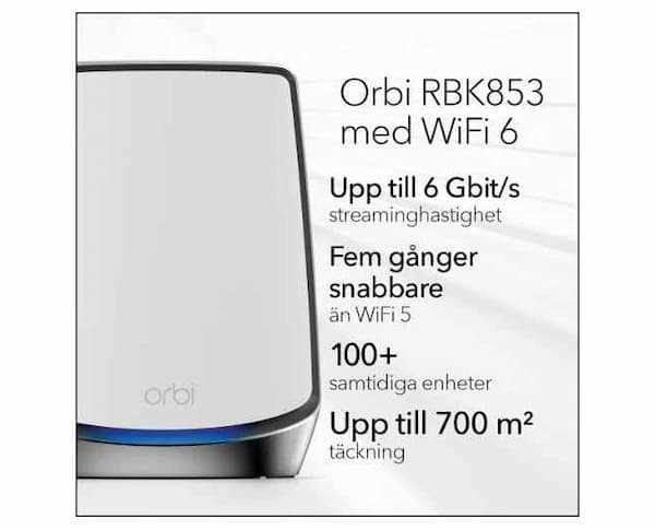 Home Networking Wireless Adapter Netgear Orbi RBK853-100EUS AX6000 6Gbps Tri-Band Wi-Fi 6 System with 2 Satellite