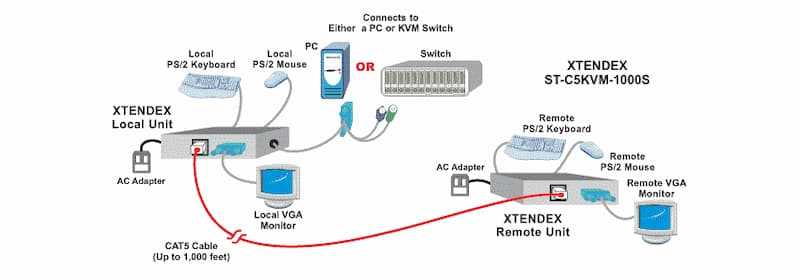 Home Networking Network Switches NTI ST-C5KVM2ARS-1000S KVM Extender (Black)