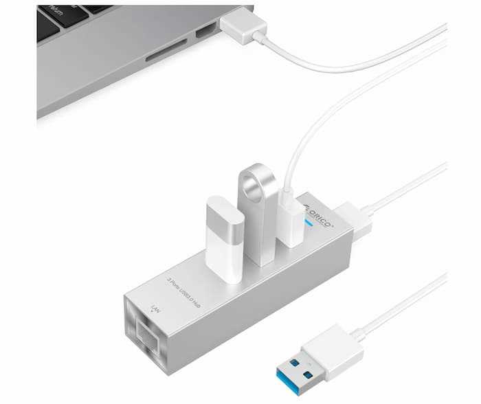 Home Networking USB Hubs Orico ASH3L-U3 Aluminum Alloy 3 Port USB3.0 to RJ45 Gigabit Ethernet Adapter HUB- Silver