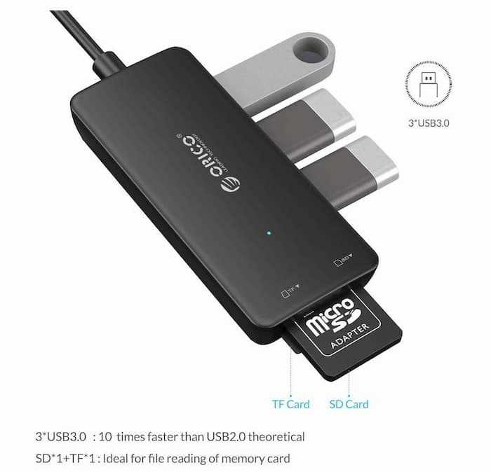 Home Networking USB Hubs Orico H3TS-U3-V1-BK 3 Ports USB Hub with Card Reader- Black
