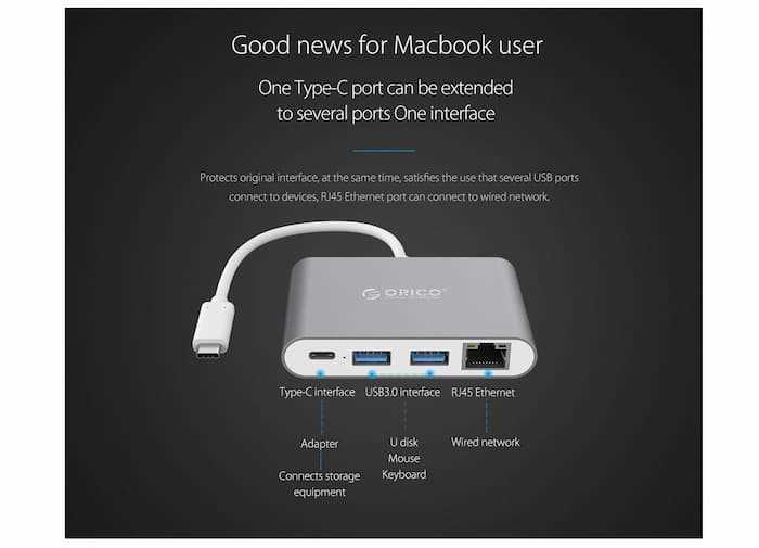 Home Networking Network Adapter ORICO RCR2A Aluminum Hub Type-C to Type-C / USB3.0 /RJ45 Adapter