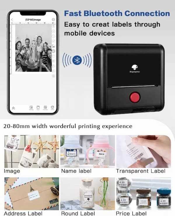 Home Copper Systems Cable Management Label Printers & Accessories Phomemo M200 Bluetooth Thermal Label Printer Compatible with 20mm-75mm - (Black, Pink, White)