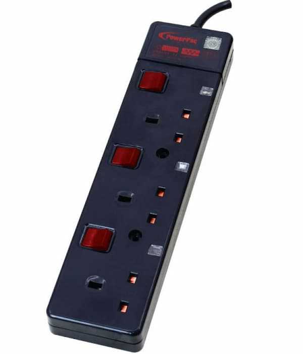Home Testers and Tools Fiber Testers Power Meters Hot PowerPac PP3886BK Extension Cord, Extension Socket, Safety Mark 3 Meter