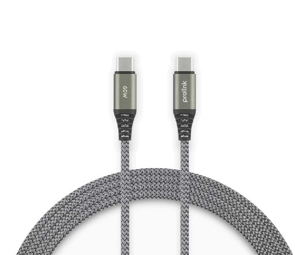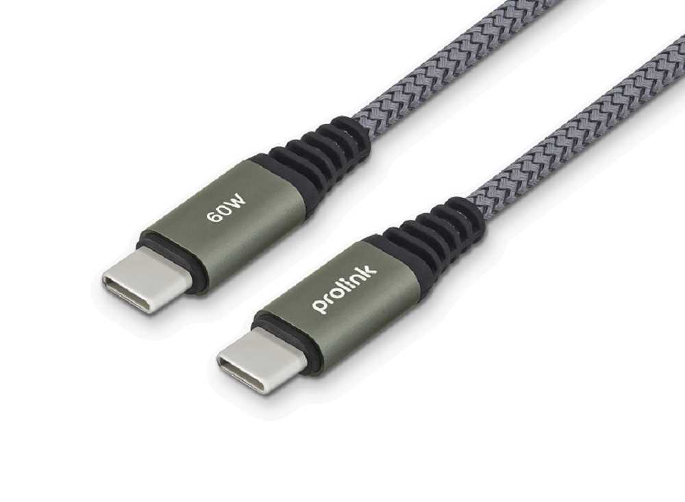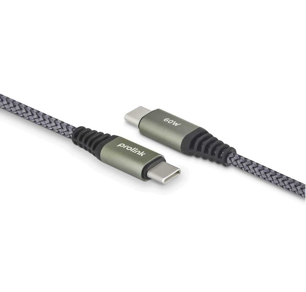 Home Networking Power Prolink GCC-60-01/1M-GRY USB Type-C to C Cable (3A, 60W) - Grey