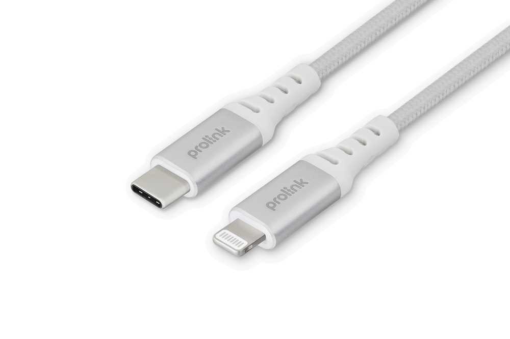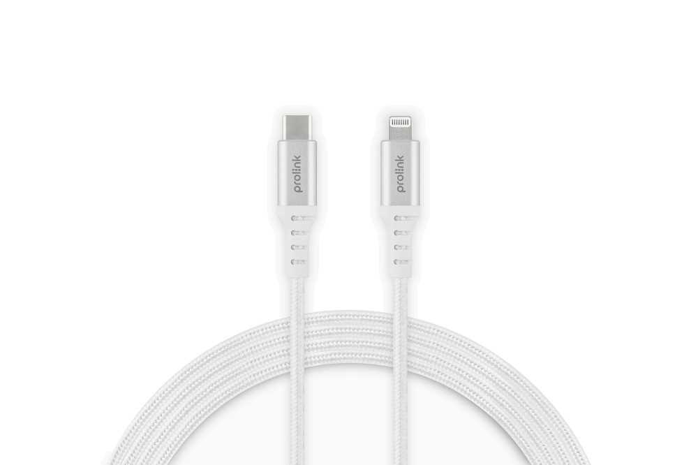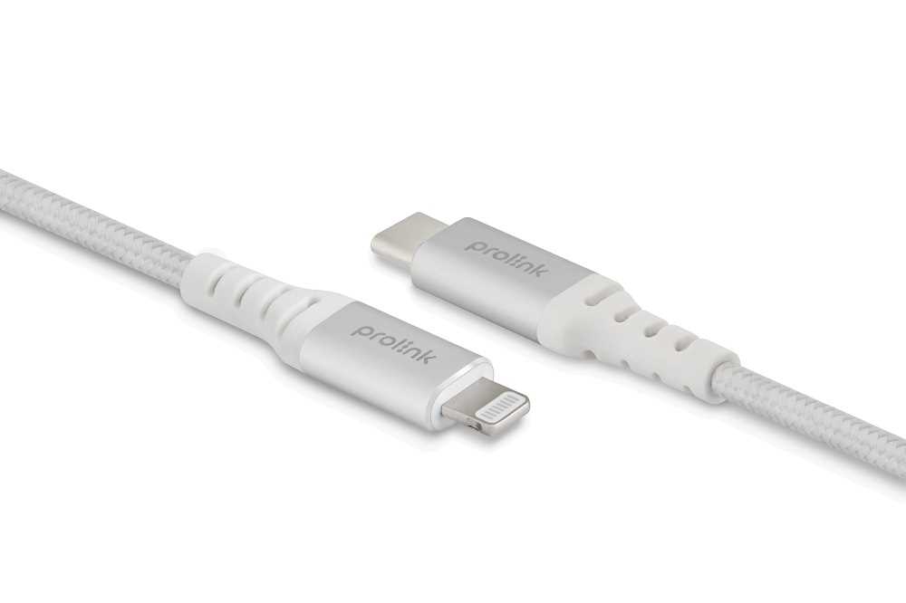 Home Networking Power Prolink GCL-30-01/1M/SWHT USB Type C to Lightning (3A, 30W) - Silver & White