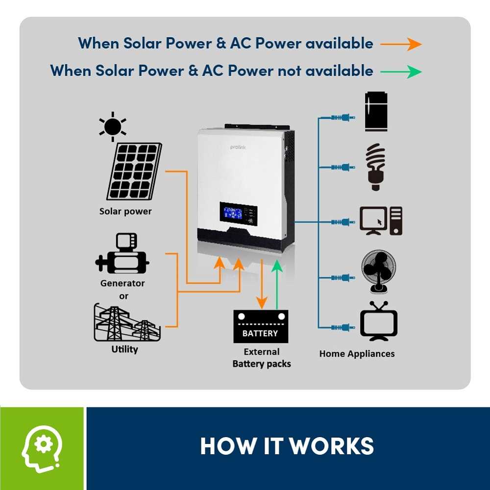 Home Networking Power Prolink Haus V 2KM-24 Pure Sine-Wave Hybrid Off-Grid Solar Inverter Power Supply (White)