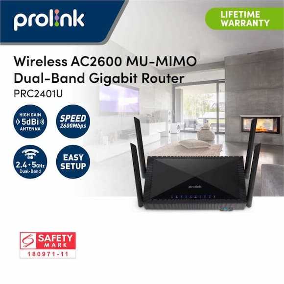 Home Networking Router, Security, NPB Routers Prolink PRC2401U Wireless AC2600 Dual-Band Gigabit Router