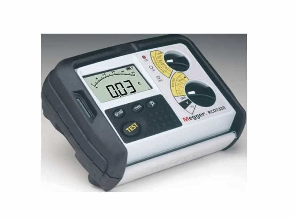 Home Testers and Tools Fiber Optic Tools RS PRO Megger RCDT320-EN-BS RCD Tester, RCD Test Type DC, RCD Test Current 1000mA CAT III 300V - Black & White