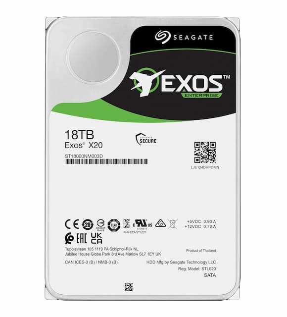 Home Networking Servers & Storage Seagate Exos X20 18TB Enterprise Internal HDD - SATA 6Gb/s, 7200RPM, CMR, Hot-Pluggable, 512e/4Kn (ST18000NM003D)
